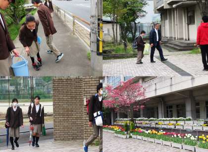 おはようございます。水曜日の朝は、モーニングクリーンキャンペーン(モニクリ)です。生徒会本部生徒を中心にボランティアの生徒で、清掃活動を行っています。