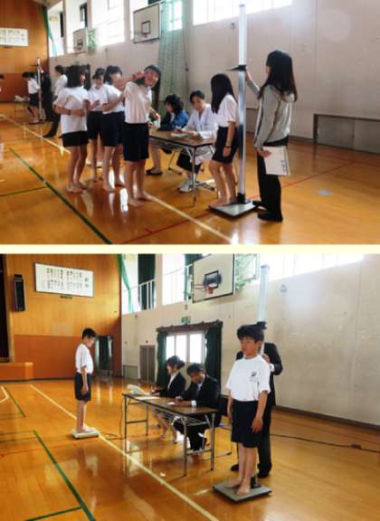 本日の2,3限、身体計測を行いました。体育館では身長及び体重の測定、各教室で視力検査、1,3年生は被服室で聴力検査が行われました。