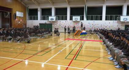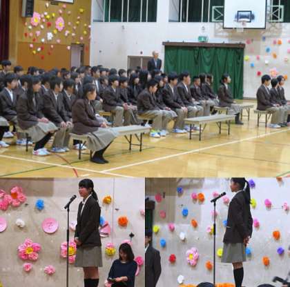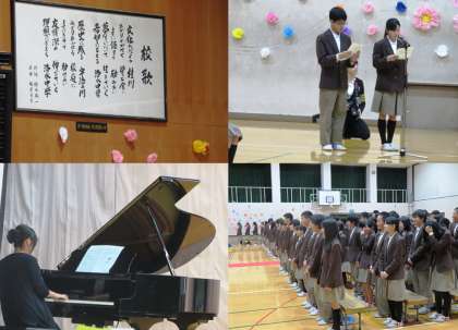 はじめの言葉に引き続き、歓迎の言葉、司会者による歌詞の紹介の後 校歌斉唱と続きました。