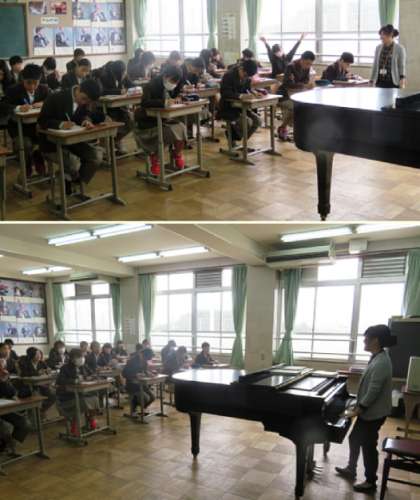 4限の授業の様子です。上から、2組 英語、3組 音楽、4組 理科 です。