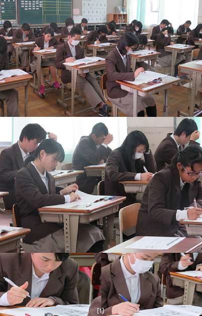 5限の全国学力・学習状況調査(理科)の様子です。上から、2組、3組、4組 です。