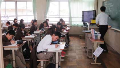 4限の授業の様子です。上から、2組 理科、3組 数学、4組 英語 です。
