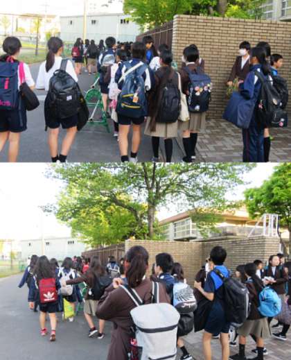 下校の様子です。帰宅後は、手洗いやうがいをきちんとしましょう。