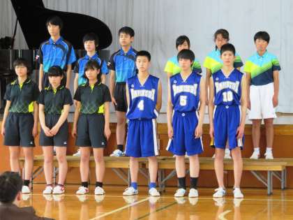 全員で「若い力」を歌い、選手団が退場し激励会は終了しました。