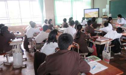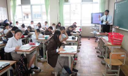 4限の授業の様子です。上から、2組 英語、3組 音楽、4組 理科 です。