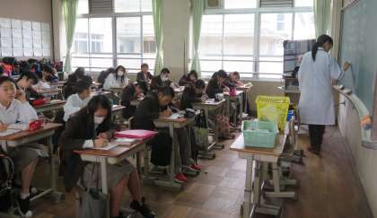 4限の授業の様子です。上から、2組 理科、3組 数学、4組 英語 です。