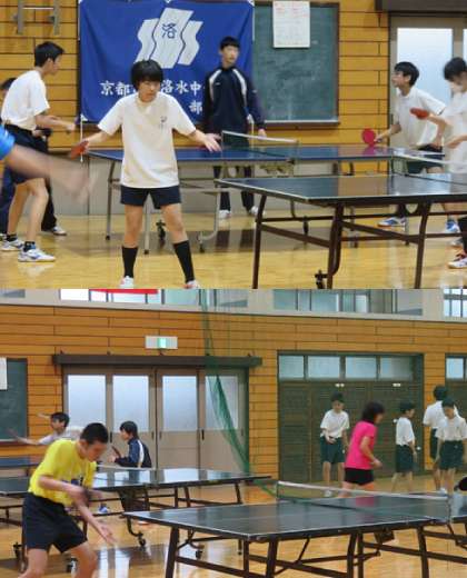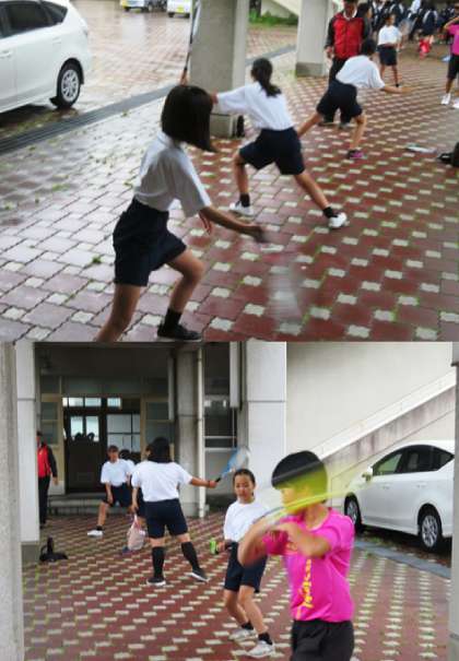部活動の様子です。上から、サッカー部、ソフトテニス部、卓球部です。