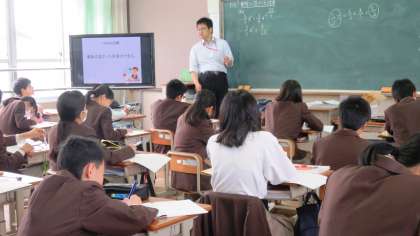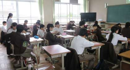 1限の授業の様子です。上から、2組 理科、3組 数学、4組 英語 です。