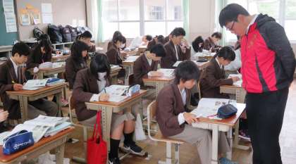 1限の授業の様子です。上から、2組 社会、3組 英語、4組 数学 です。