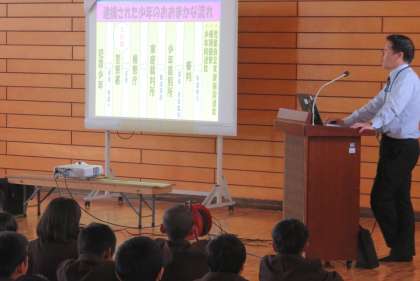 本日の6限、1年生は教育委員会から講師の先生に来て頂き、「正しい判断力と行動力を身につけよう」と題して、非行防止教室を行いました。