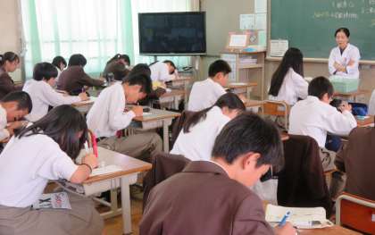 4限の授業の様子です。上から、2組 英語、3組 音楽、4組 理科 です。