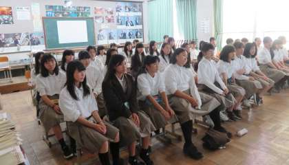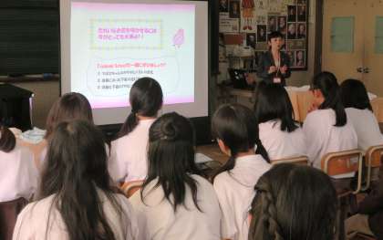 本日、1年生の女子はワコールから講師の先生に来て頂き、「思春期の身体の変化について学び、変化の著しい時期に適切な下着を選んで身につけられるようにする」ことを目的に出張型教室〜つぼみスクール〜を実施しました。また、男子は、保健の授業を行っていました。