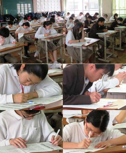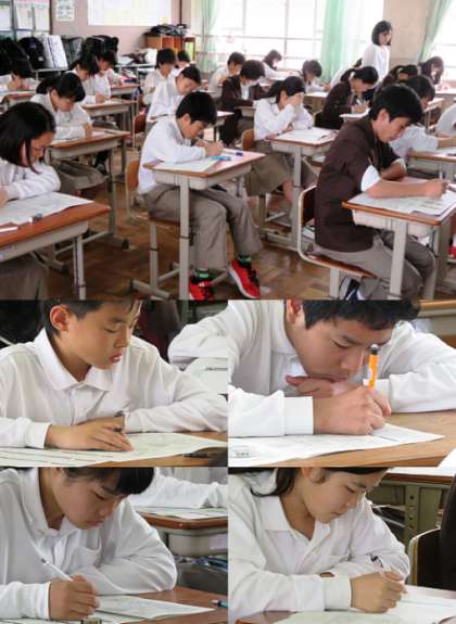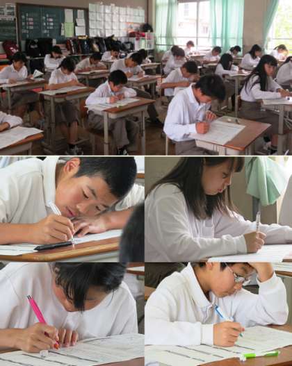3限、2年生の社会のテストの様子です。