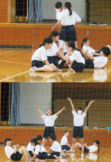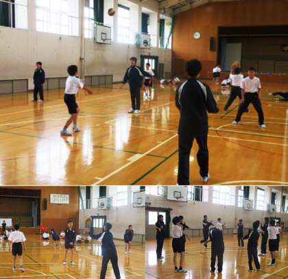 2限の授業の様子です。上から、2組、3組 体育、4組 理科 です。