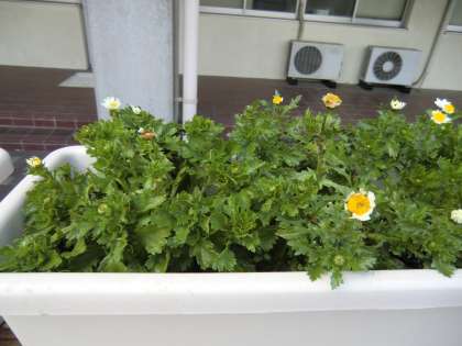 お正月明けに学校に来てみると校門に続く道には写真のような木の実の種がいっぱい落ちていました。また、プランターの花はところどころ写真のように花びらが食いちぎられていました。年末年始は学校が閉鎖され人の姿はありませんでした。きっとその間は、誰に気をつかうでもなく、野鳥たちが我がもの顔で校内を自由に行き来していたのでしょう。