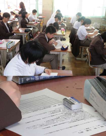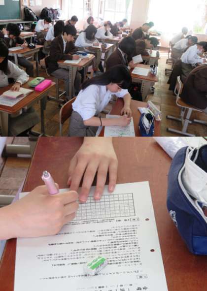 本日は、朝読書の時間に一読一筆(月2回)を行いました。3年生の様子です。