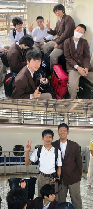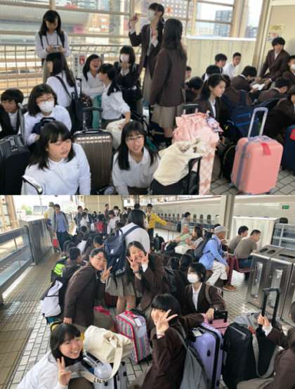 ホームに移動し、乗車隊形になって新幹線を待っています。