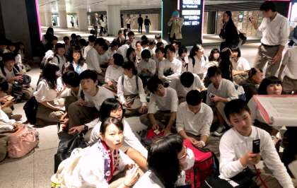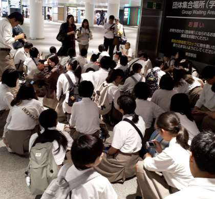 班別研修に向けて、諸注意を受けています。全員に、メトロカードが配布されました。なくさないようにして下さい。