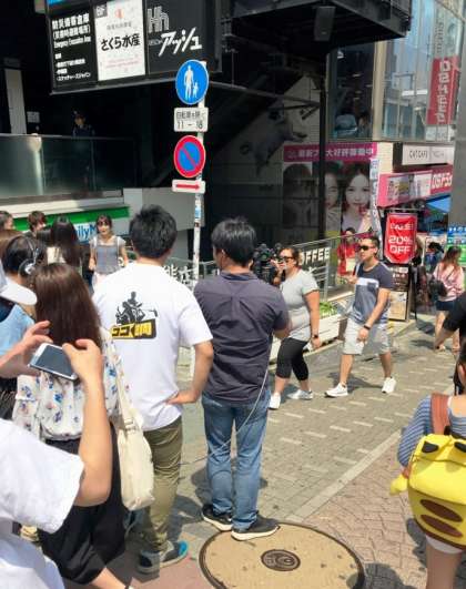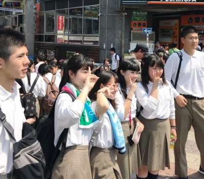 班別研修(原宿チェックポイント)の様子です。竹下通りでめざましテレビのココ調に遭遇しました。
