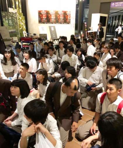 スイカツリーでの見学も終了し、宿舎に向けて出発しました。外に出てみると、レインボースカイツリーになっていました。レインボースカイツリーは珍しいそうです。