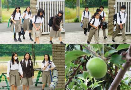 朝の様子です。3枚目の写真の右下は、「りんご」です。