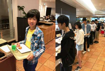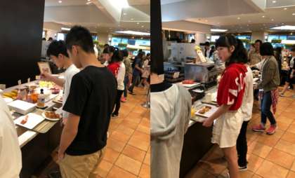 バイキング形式の朝食です。みんなたくさんとっています。