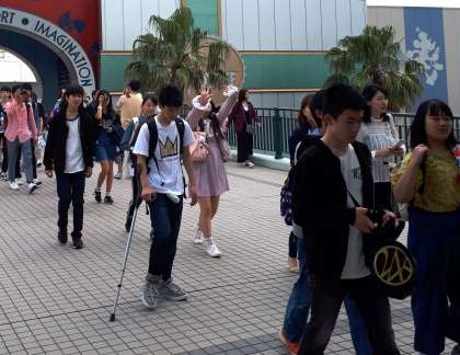 舞浜駅に到着し、ディズニーランドのゲートに向けて移動中。