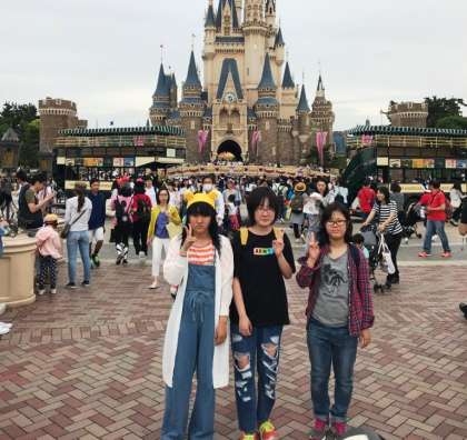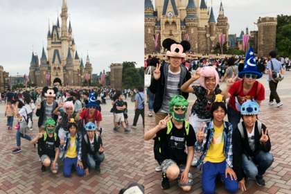 シンデレラ城噴水前(チェックポイント)でのグループ写真です。