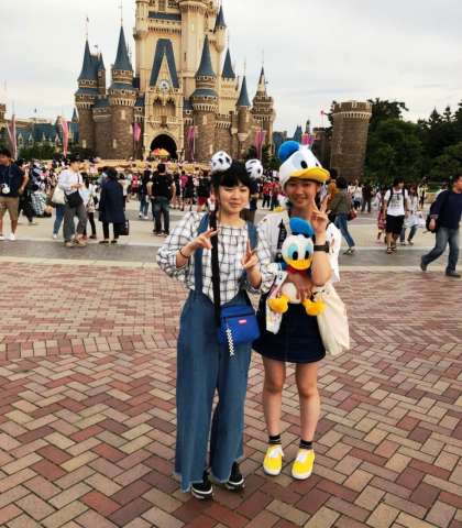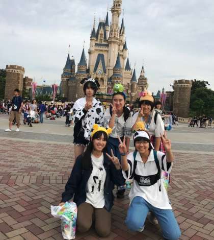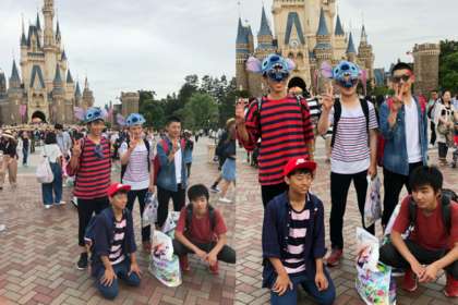 シンデレラ城噴水前(チェックポイント)でのグループ写真です。