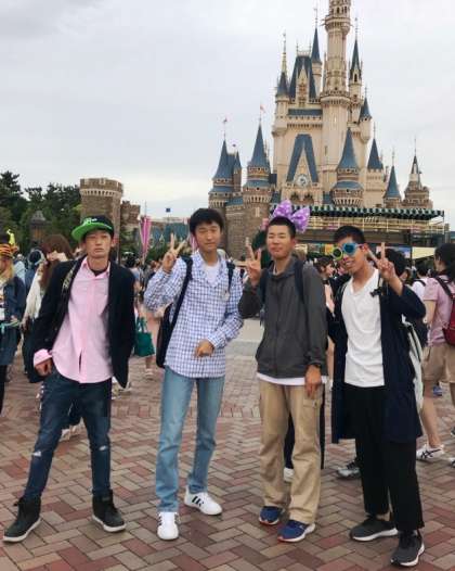シンデレラ城噴水前(チェックポイント)でのグループ写真です。これで全グループがチェックを受けました。