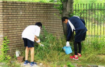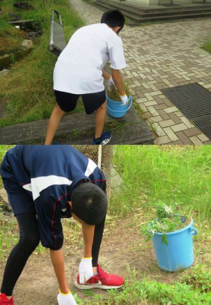 本日、事業所さんがお休みのとことの2人の生徒が登校し、校内・ビオトープ周辺の雑草の掃除をしてくれました。ありがとう。