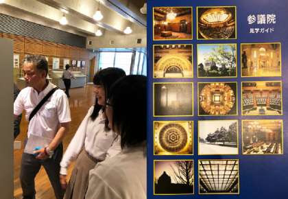 国会議事堂に到着後、説明を受けて見学が始まりました。見学ガイドは通行証になるそうです。