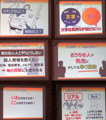本日の6限、1年生はKDDIから講師の方に来校して頂き、ケータイ教室を実施しました。SNSの正しい使い方、危険性等についてお話し頂きました。