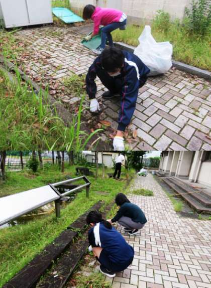 本日も、事業所さんがお休みのところの生徒が登校し、初日に続きビオトープ周辺の雑草の掃除をしてくれました。また、ビオトープに落ちる葉っぱを救う網の修繕もしてくれました。ありがとう。