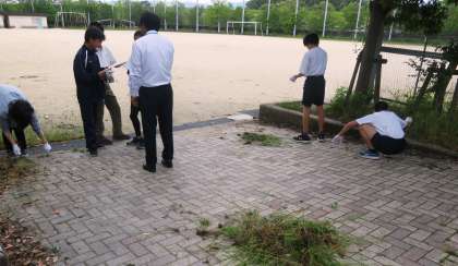 チャレンジ体験最終日の様子です。昨日までで体験が終了しているメンバーで、学校の草刈りをしてくれました。