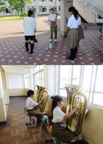 部活動の様子です。上がバレーボール部、下が吹奏楽部です。