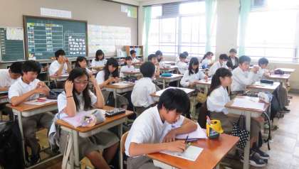 2限の授業の様子です。上から、2組 音楽、3組 国語、4組 数学 です。