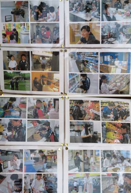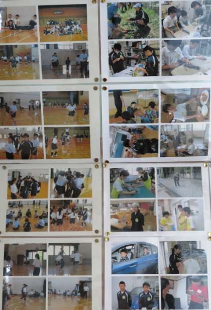 掲示物が新しくなっていました。2年生の授業やチャレンジ体験の様子の写真が掲示されていました。