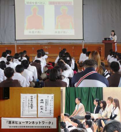 3限は体育館において、PTA主催・地生連後援の洛水ヒューマンネットワーク講演会が行われました。今年度は、京都市教育委員会体育健康教育室より指導主事の先生に来ていただき、食教育について「中学生の食教育〜食から毎日を考えていこう〜」をテーマにご講演いただきました。