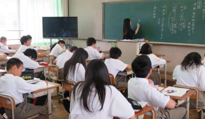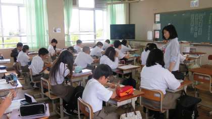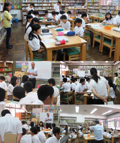 2限の授業の様子です。3組は図書室を使っての研究授業中です。上から、2組 国語、3組 社会、4組 国語 です。