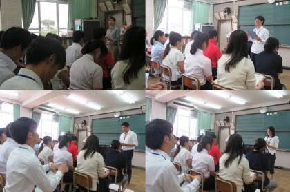 最後にもう一度集まり、全体会を行いました。全体会では、分散会での協議の報告が行われ、最後に、校長先生より講評あり、研修会は終了しました。