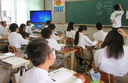 4限の授業の様子です。上から、2組 音楽、3組 社会、4組 数学 です。