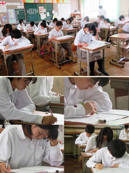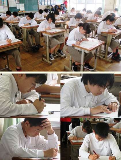 2限の英語のテストの様子です。上から、2組、3組、4組 です。