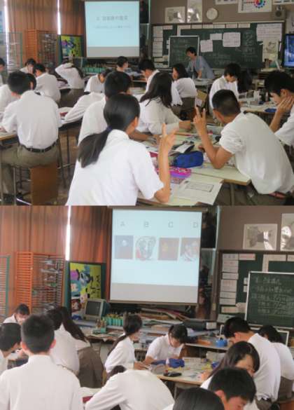 3限の授業の様子です。上から、2組 美術、3組 理科、4組 家庭 です。
