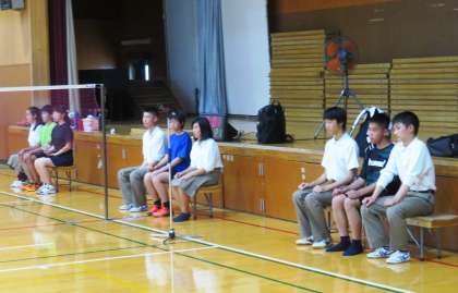 体育館では、運動系の部活動のキャプテン等が集まって、今週の金曜部に行われる夏季大会激励会のリハーサルが行われていました。