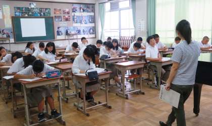 2限の授業の様子です。上から、2組 音楽、3組 国語、4組 数学 です。