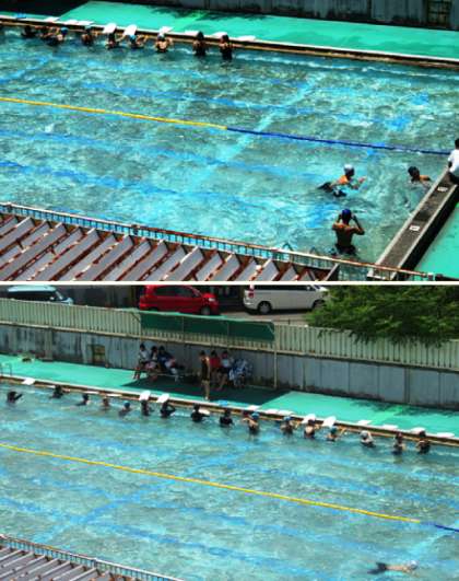 3限の授業の様子です。上から、2組 理科、3組、4組 体育 です。