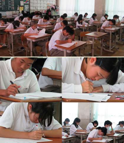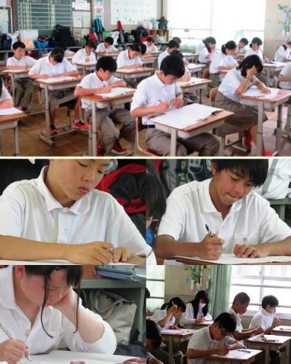 2年生は本日(4限〜6限、国・社・数)と明日(5限6限、理・英)の2日間、学習確認プログラムが行われます。5限の数学のテストの様子です。
