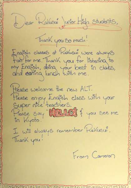ALT キャメロン先生からのメッセージ