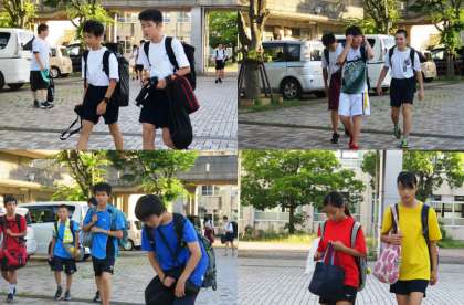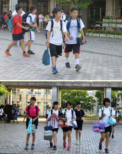 下校の様子です。今日も暑い1日になりました。水分補給は大切ですが、とりすぎには注意しましょう。